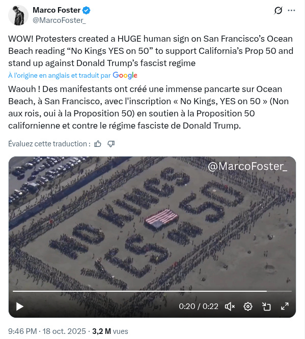 C’est ainsi qu’après peu près cent milles personnes ont manifesté sur Time Square et dans Central Park à New York, ville qui compte 8,6 millions d’habitants. Des manifestants ultra-minoritaires dans une opération purement politique planifiée de longue date par le parti démocrate et ceux qui le financent - pour le No King Day, principalement Soros et une héritère de Wal-Mart, près de 10 millions de dollars chacun.