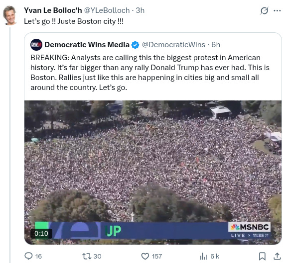 Commençons par souligner l’ironie qu’il y à voir des centaines de milliers de personnes manifester en scandant “Pas de roi”, qui ont toutes voté pour une candidate démocrate sortie du chapeau, Kamala Harris, désignée par les caciques du Parti démocrate, Barack Obama en tête, alors que Joe Biden, promptement viré pour cause de sénilité dont personne n’était - c’est l’évidence- au fait avant 2024, les avaient remportées.