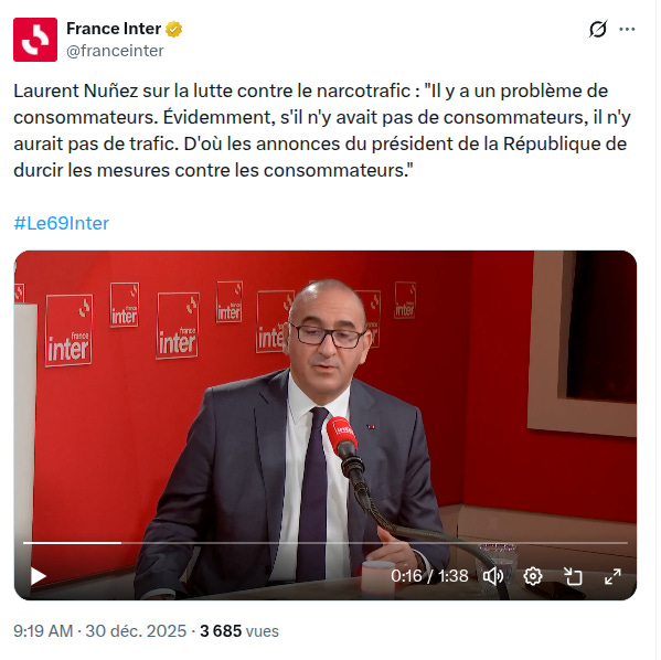 Les stupéfiants consommés en France sont dans leur écrasante majorité importés, ils ne sont pas produits dans hexagone. Le problème n’est pas la demande, qu’il est impossible d’assécher. Le problème est l’existence d’une offre pléthorique et le manque de volonté politique de s’attaquer au blanchiment.
