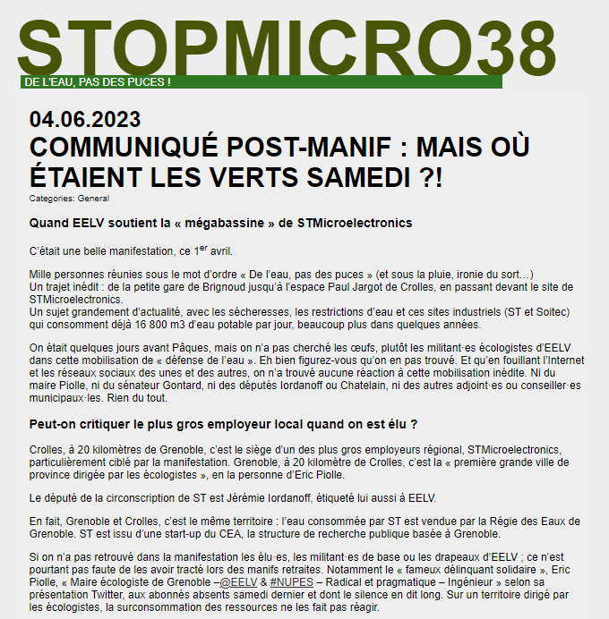 Les bobos ne se dévorent pas entre eux. Les écolos sont cadres chez ST. Et chez Schneider, et HP, et Air Liquide, et au CEA, et dans la fonction publique etc. Aussi simple que cela.