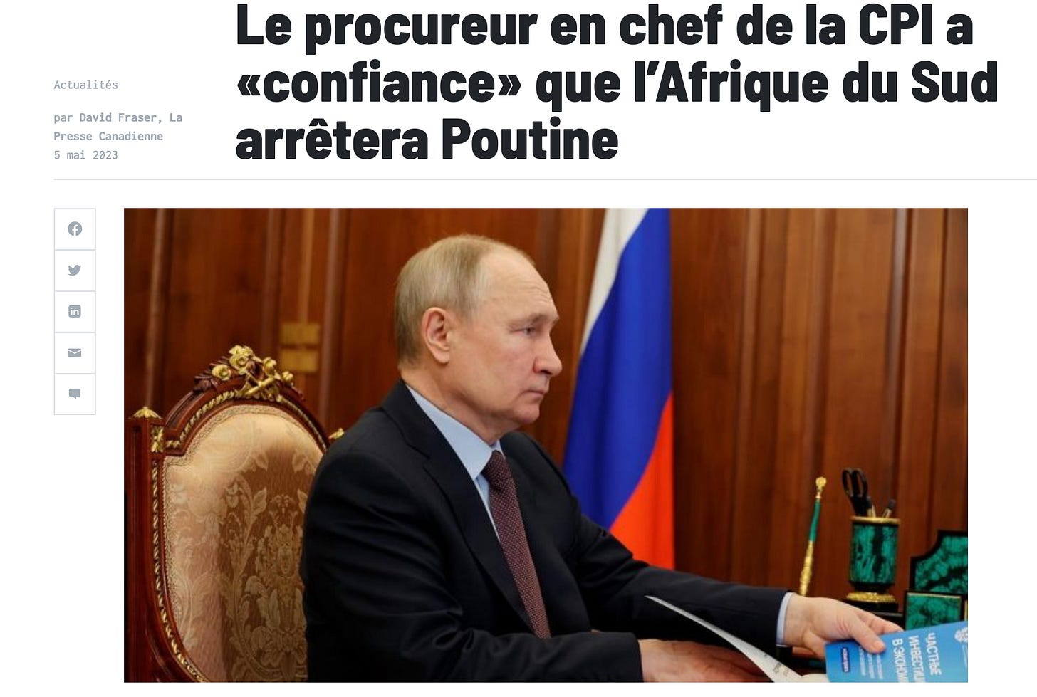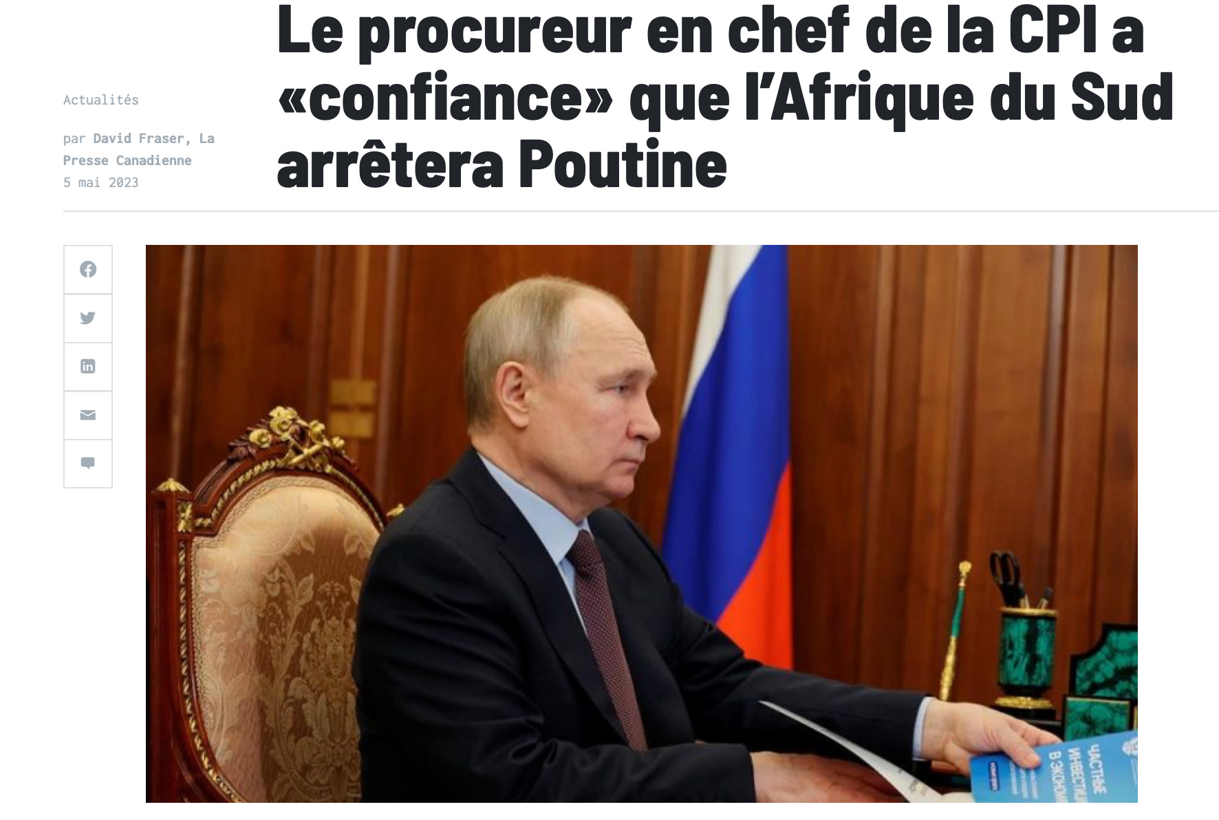 “J’ai fait un rêve"…” (copyright MLK) - La Cour pénale internationale (CPI), présidée par le polonais Piotr Hofmański, compte sur l’Afrique du Sud pour qu’elle arrête Vladminir Poutine chez elle, lors d’un sommet réunissant en août les BRICS, soit le Brésil, la Chine, l’Inde ainsi que… la Russie. Maintenant qu’elle a émis un mandat d’arrêt international contre le chef de l’Etat russe et contre sa commissaire aux droits de l’enfant, la CPI se sent pousser des ailes. Et le clame haut et fort. Ce qui pose déjà question sur la méthode…