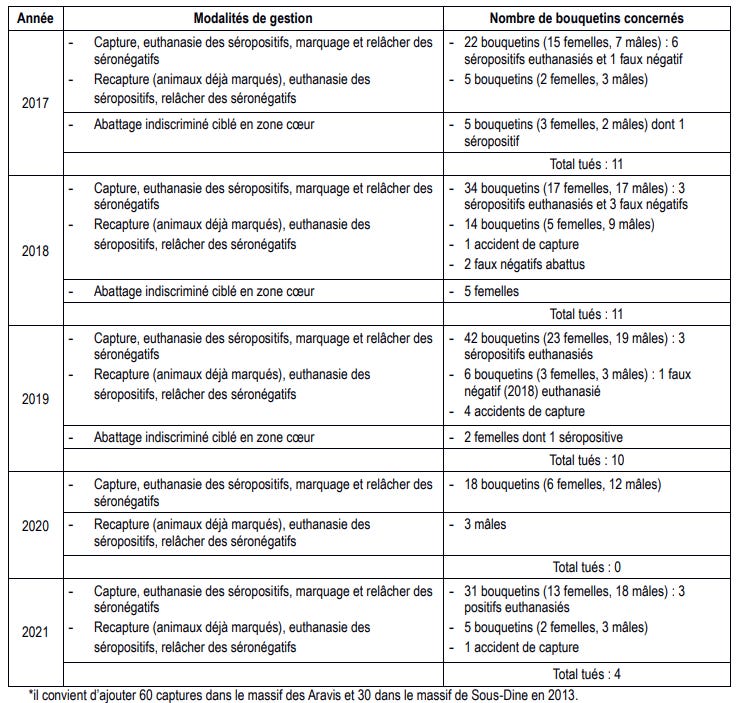 D’un côté, les associations de protection de la nature doivent comprendre que le tir d’individus sains est inévitable et pourra même s’accroître avec la baisse de la prévalence de la brucellose chez les bouquetins afin de maintenir la population à son niveau optimal. Les avortements provoqués par la brucellose sont, qu’on le veuille ou non, une forme de régulation de la population qui devra être effectuée par d’autres moyens.