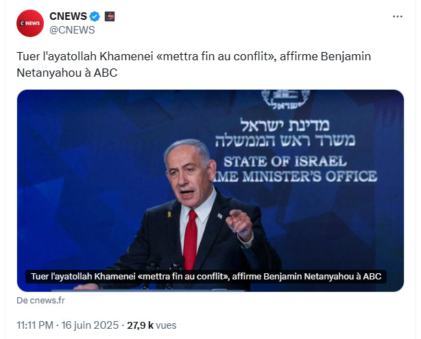 “Tuer l’ayatollah Khameini mettra fin au conflit”, affirme Benjamin Netanyahou à la BBC.