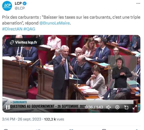 C'est une aberration écologique car c'est financer le fossile. Même si c'est vrai, c'est pas gentil pour Gérard Larcher. Et si ce n'était que lutter contre l'inflation et améliorer le pouvoir d'achat de tous les Français en réduisant le coût d'une dépense contrainte et d'une énergie dont les transports en premier chef de marchandises ne peuvent se passer ? Le prix de l'électricité payé par les ménages et les entreprises françaises est au bas mot 300% supérieur à ce qu'il devrait être parce qu'il est indexé sur le prix du gaz, une énergie fossile. Le consommateur paie cher, le contribuable paiera encore plus cher les inepties de M. Le Maire.