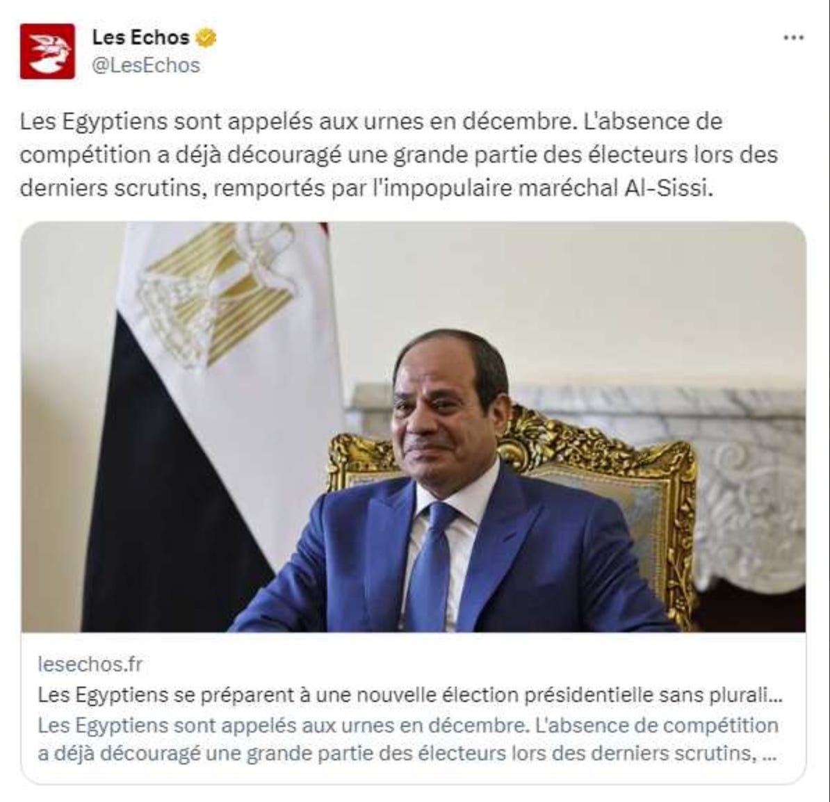 La grande majorité des Egyptiens ont bien d'autres problèmes à régler – comme par exemple mettre du pain sur table – que de se préoccuper d'une élection effectivement sans enjeux. Sans compter que l'armée reste, comme dans de nombreux pays de la région, l'institution la plus forte du pays dont elle contrôle une part importante de l'économie. Elle est garante de la stabilité dans une Egypte ravagée économiquement par le contrecoup des sanctions occidentales contre la Russie.