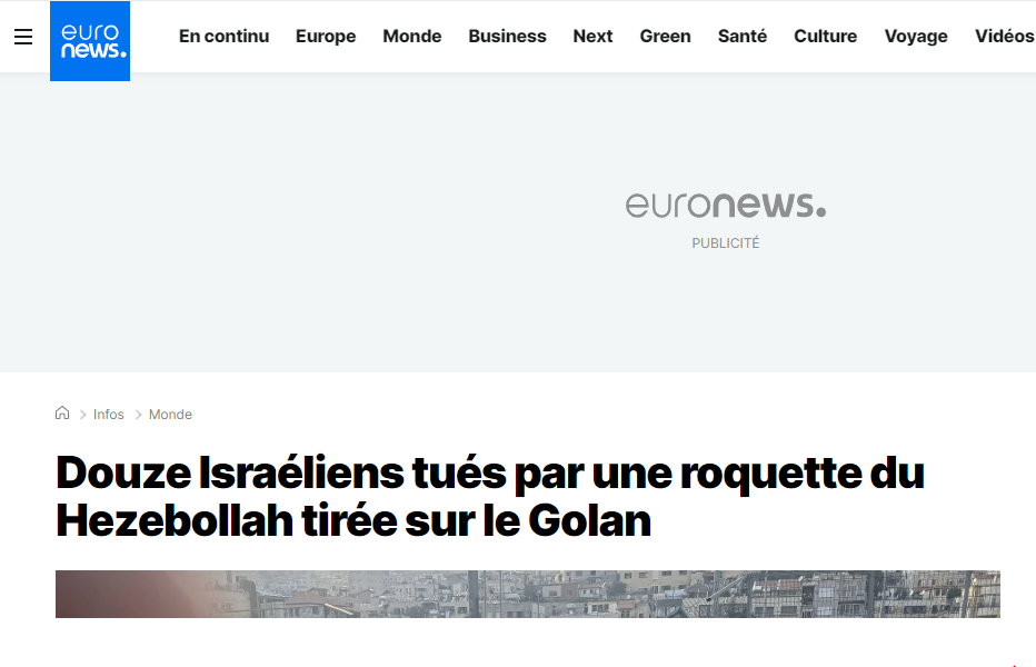 Hasard? Au même moment, une “frappe” a tué douze enfants sur le plateau du Golan, immédiatement présentés comme israéliens. Le plateau du Golan est occupé illégalement par Israël depuis la guerre des six jours. Les enfants tués alors qu’ils jouaient au foot étaient tous druzes, de nationalité syrienne avec un permis de résidence en Israël. L’Etat hébreu étant un Etat d'apartheid, il ne naturalise pas la population non-juive autochtone d’un territoire occupé illégalement pour deux raisons : l’eau et le surplomb sur le Sud-Liban et la Syrie.