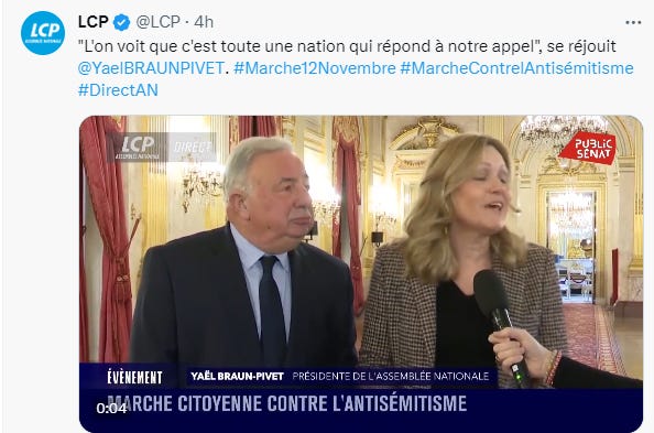 Yaël Braun-Pivet et Gérard Larcher s’étaient déjà drapés, extatiques, des couleurs de l’Ukraine, pays mafieux et dirigé de fait par des nazis qui, si leur haine des Russes est plus forte que leur haine des Juifs, n’en restent pas moins des antisémites patentés. On ne peut rien attendre des présidents des deux chambres du parlement, fors le déshonneur.