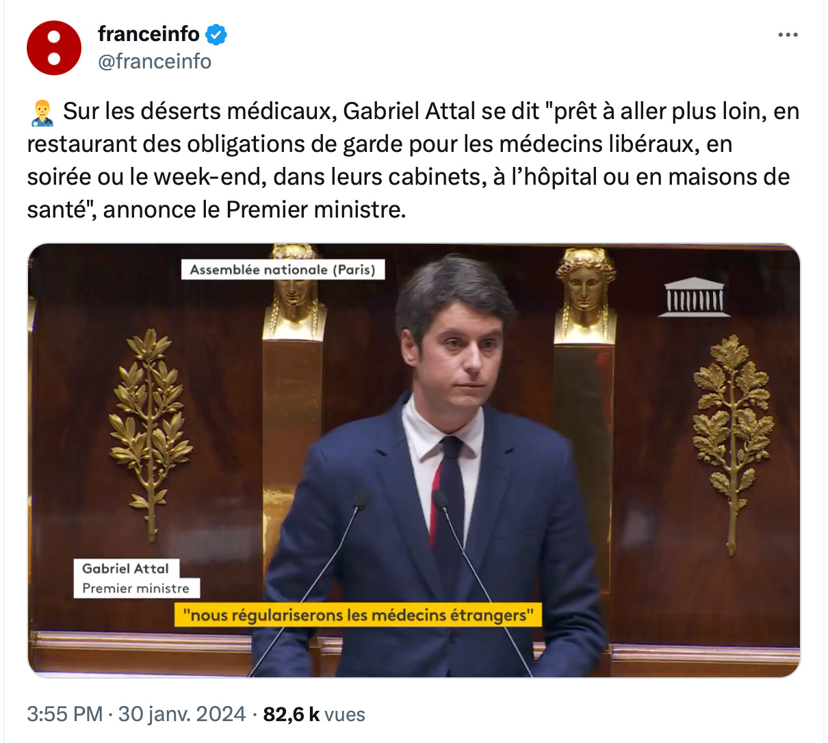 Mais qu'on se rassure : Gabriel Attal a dit vouloir régulariser la situation des médecins étrangers en France. Ce qui est bien mais ne sera évidemment pas suffisant. Et, même, aller en chercher à l'étranger (sic). En France, un étudiant en médecine n'a pas le droit au redoublement. Ce qui le conduit à aller faire ses études de médecine ailleurs. Admirez la logique du raisonnement.