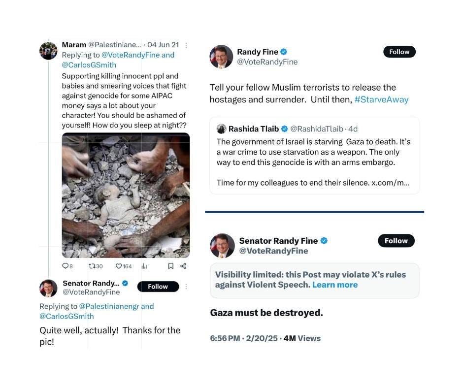 Cut now to the real rogue’s gallery: Florida’s own Randy Fine, that congressman turned unhinged uncle at the Thanksgiving table, who’s not just leading the lynch mob against Carlson and every Israel-policy skeptic in sight—he’s the one slinging actual slaughterhouse rhetoric. As if vaporizing innocent civilians is just spicy foreign policy.