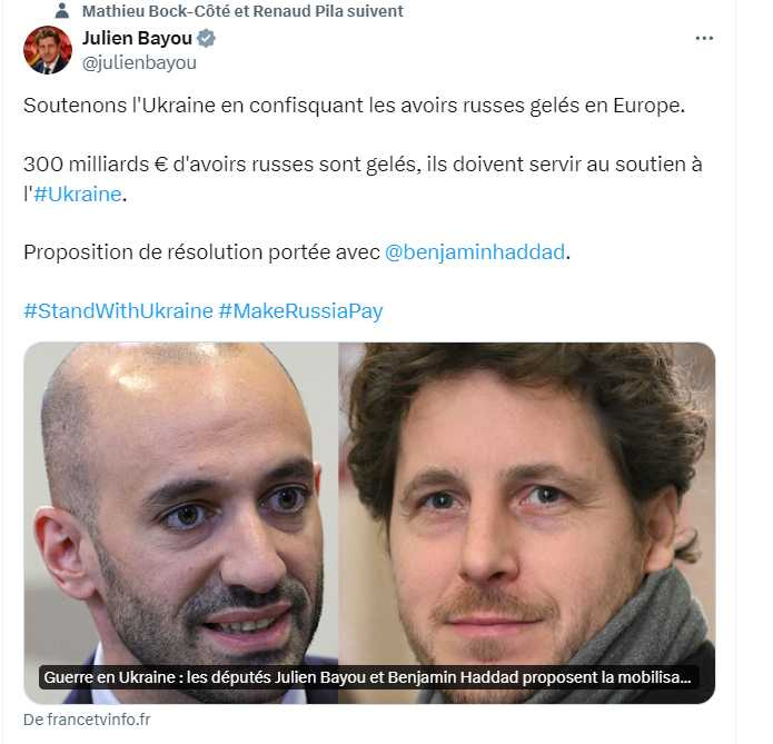 Au cas où MM. Bayou et Haddad auraient du mal à comprendre, lire la tribune d'Oleg Nesterenko "La confiscation des actifs russes serait une victoire stratégique de Moscou". L'avertissement est clair.