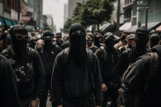 Alors que j’étais assis dans le public lors du procès, je n’ai pas pu m’empêcher de remarquer que la plupart des personnes présentent dans la salle d’audience étaient des antifas soutiens de Mme Azar – dont certains avaient été filmés lors de l’émeute pour laquelle la prévenue était poursuivie. La plupart d’entre eux étaient masqués, dissimulant ainsi leur identité. Nombreux portaient des keffiehs palestiniens pour afficher leur allégeance à des causes politiques extrêmes, dont certaines prônent le terrorisme. Leur apparence indiquait clairement qu’ils faisaient partie d’une organisation politique, ou d’un gang, autant d’expression de leur vertu politique ancrée à l’extrême gauche.
