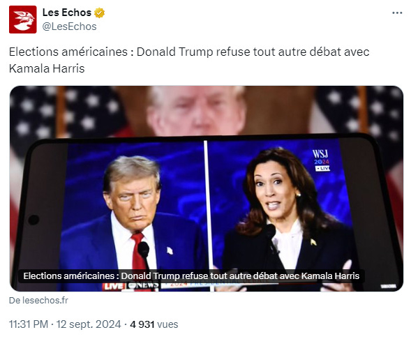 La grande presse américaine et européenne reprend en cœur que Kamala Harris a remporté le débat face à Donald Trump. En 2016, la presse était également unanime : Hillary Clinton avait écrasé Donald Trump. On vit le résultat.