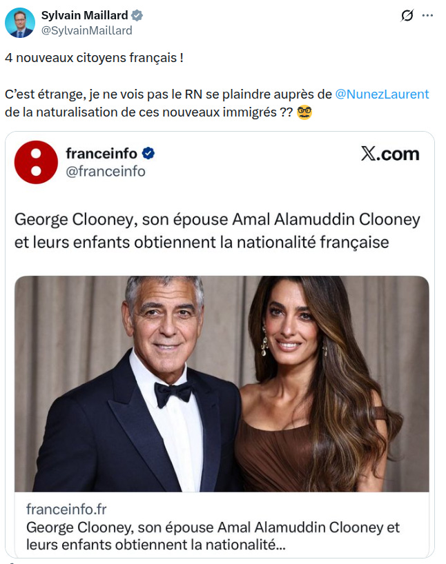 George Clooney, son épouse et ses enfants sont des Français de papiers, en aucun cas nos concitoyens.