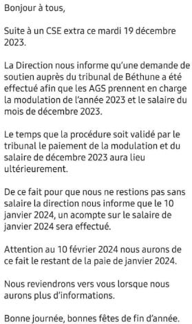 De sources syndicales, nous avons appris que la direction de l’agence de Liévin de Avec (aides à domicile) avait saisi le tribunal de Béthune pour obtenir l’intervention de l’Association de garantie des salaires.