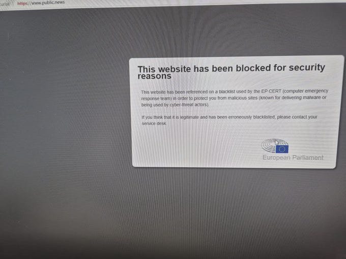 Public News est inaccessible au Parlement européen parce qu’ayant été mis sur une blacklist pour des raisons de sécurité.