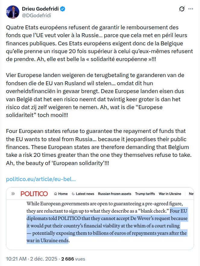 Belgium, the second-largest shareholder in Euroclear, acted with perfect justification by demanding iron-clad guarantees from all other European Union member states. Why? Because Belgium correctly understood that it alone would be left to face the full diplomatic, legal, and financial fallout of what would amount to the outright spoliation of a sovereign state’s inalienable assets.