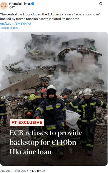 In the meantime, the European Central Bank (ECB) has delivered a firm, icy refusal to the chorus of geopolitical hotheads—chiefly emanating from Scandinavia, the Baltics, Poland, Germany, and France—who have been loudly demanding a colossal $140 billion loan be granted to Ukraine.