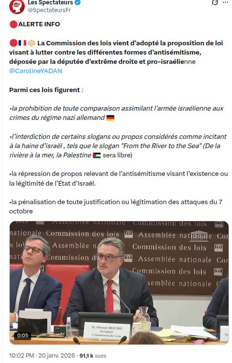In France, the pattern repeats with the proposed law against “renewed forms of antisemitism,” spearheaded by Caroline Yadan Pesah (a Macronist Rep representing French citizens abroad; her constituency includes Israel) and recently greenlit by the Assemblée Nationale’s Law Commitee.