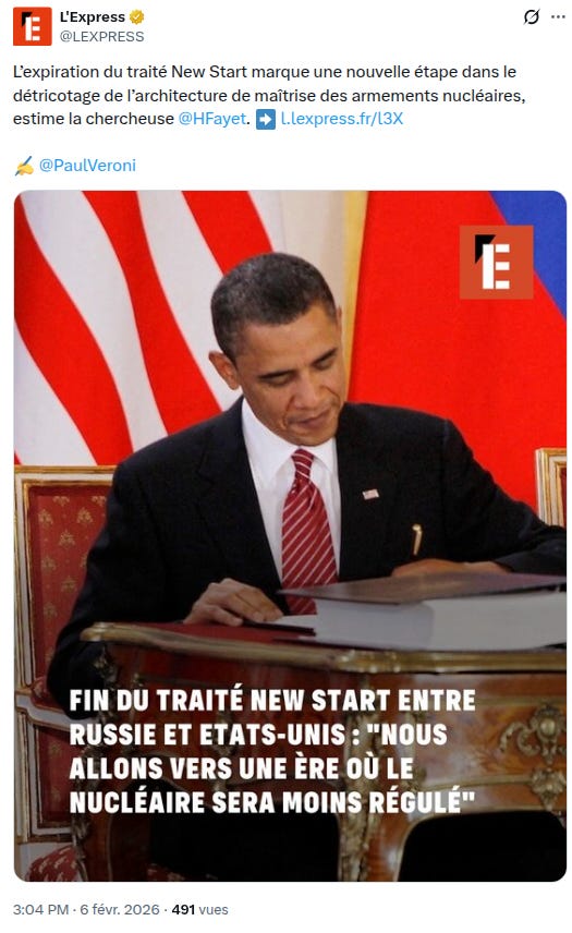Le traité de contrôle et de limitation des armements nucléaires New Start conclu en 2010 entre les Etats-Unis et la fédération de Russie est arrivé à échéance cette semaine. Cris et atermoiements chez ceux qui sont toujours incapables de comprendre que la logique des blocs a vécu, et qu’il ne s’agit pas d’un détricotage.