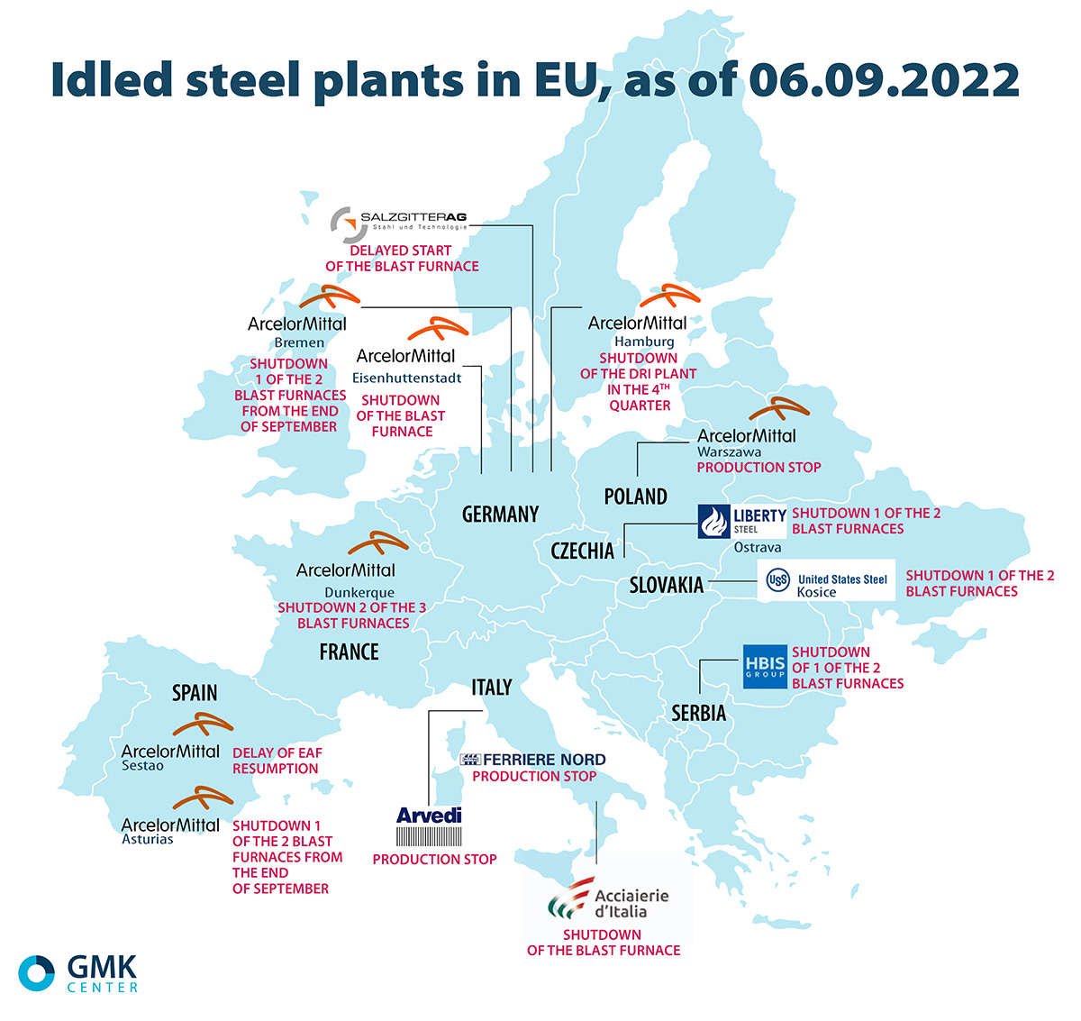 En Europe et dans le monde, les producteurs d’acier flanchent les uns après les autres. On a beaucoup parlé d’Arcelor Mittal après que le deuxième sidérurgiste mondial ait mis à l’arrêt deux de ses hauts fourneaux. Mais derrière lui, c’est l’hécatombe. GMK Center, un think tank ukrainien spécialisé dans les métaux a fait le décompte. Début septembre, quinze aciéries avaient suspendu ou prévoyaient de suspendre leur production en Europe.