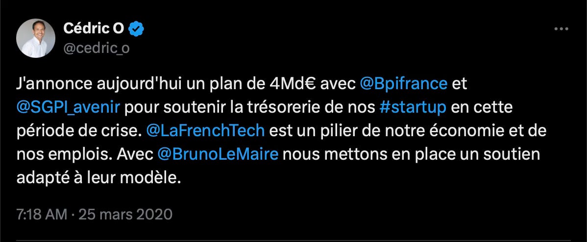 C’est sous le mandat de Cédric O qu’a été élaboré le programme FrenchTech 2030 : 15 milliards d’euros distribués à 125 entreprises dûment sélectionnées. Dont Mistral AI en 2023 qui venait tout juste d’être lancée. Mistral AI a aussi bénéficié en 2024 d’un autre programme, lancé en septembre 2019 (sous Cédric O donc) : French Tech Next40/120.