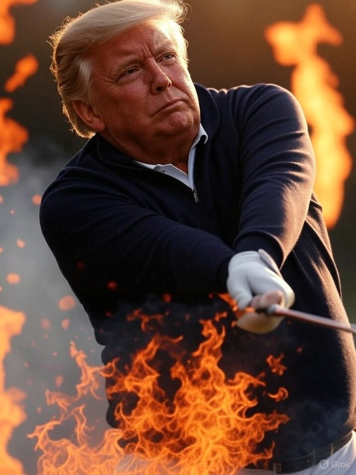 In a reckless move, Donald Trump has authorized military strikes on Iran that risk igniting a Third World War—if, indeed, these strikes are as the Pentagon portrays them, a claim that remains far from certain, as we will explore further below. We have swifly rebranded “Operation Midnight Hammer” into “Operation Midnight Putter” (we discarded “Operation Midnight Bummer” since a bummer if not a blunt object). Here is why.