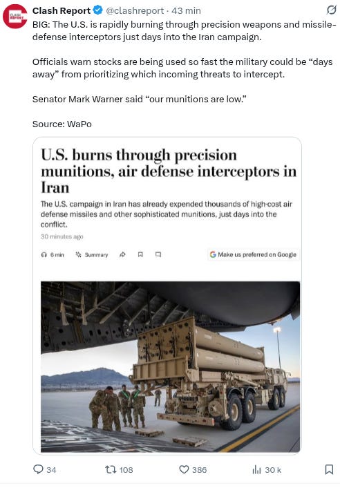 Et l’armée américaine brûle ses stocks de munitions plus vite qu’un jouer compulsif sa petite monnaie dans un bandit-manchot. Le temps joue pour Téhéran - et comme l’a fameusement dit le général Aleksandr Rodimstev à Stalingrad, le temps, c’est du sang.