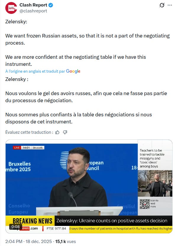 Once a gangster, always a gangster. Zelensky now wants Russian sovereign assets handed to him, not as restitution but as poker chips for his next round of negotiations. A bold demand—made effortless by the simple fact that the bill lands on someone else’s desk.