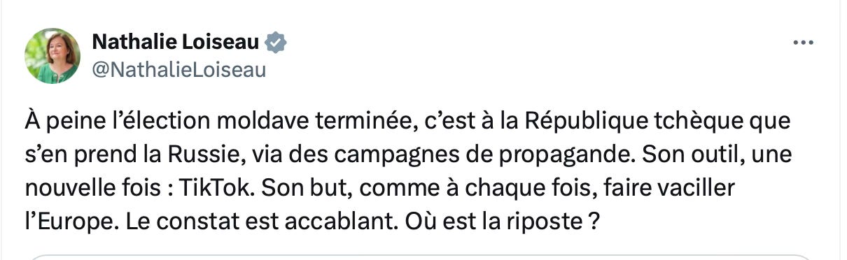 A quelques jours du scrutin, il n’est donc pas étonnant d’entendre des voix s’élever, hurlant à l’ingérence russe, soigneusement reprises par les médias à qui on peut se demander si le pouvoir en demandait tant. Comme celle en France de la députée européenne Nathalie Loiseau, dont ce n’est pas la première sortie quand il s’agit de dénoncer les influences étrangères. Peu importe qu’elle fasse à son façon peu ou prou la même chose et qu’en matière d’influence sur les réseaux sociaux, des précédents dont on reparlera plus loin ont montré que tout ceci peut procéder de la plus pure inversion accusatoire.
