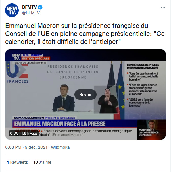 La France exerçant la présidence de l'UE en pleine campagne présidentielle française est une faute aussi lourde que grave de l'État français et des institutions européennes.