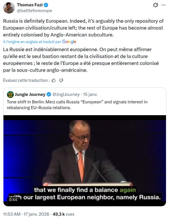 Yet even Friedrich Merz – Germany’s most dangerous chancellor since Adolf Hitler – is showing flickers of sanity by dubbing Russia “European.” How quaint. But let’s not pop the champagne: Berlin’s still too gutless to demand the Yanks pack up their troops and scram from German soil. Neither brave nor bold, our dear Friedrich.