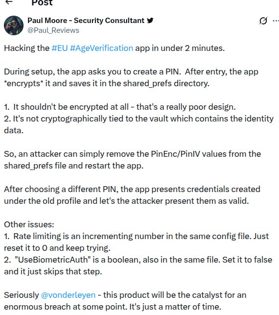 The application announced by the European Commission — which is nothing more than a digital pass lifted straight from the Covid health pass playbook — now enters the scene. It presents itself as a third way for the Commission and member states to sidestep the pitfalls and the accusations of mass surveillance, without having to rely on platforms that refuse to play ball. France has already announced plans to fold it into its national digital identity wallet — which tells you everything about where Macron’s France stands on civil liberties.