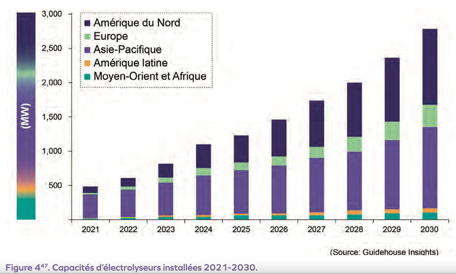 Des objectifs complètement irréalistes, comme le sont, et même plus, ceux de l’Union européenne. A l’horizon 2050, l’UE vise 60 millions de tonnes d’hydrogène vert, la moitié étant importée d’on ne sait encore vraiment où, ni même comment et avec quelles garanties au vu d’un contexte géopolitique tendu qui ne place plus forcément l’Europe au centre du jeu. Pour mesurer le pas qui reste à faire, la production actuelle d’hydrogène gris en Europe est de 10 millions de tonnes…