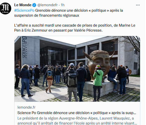 Il y a un moyen simple de couper court aux faux débats concernant WokePo Grenoble, outre limoger la direction (et celle de l’UGA aussi tant qu’on y est): l’application de la loi.